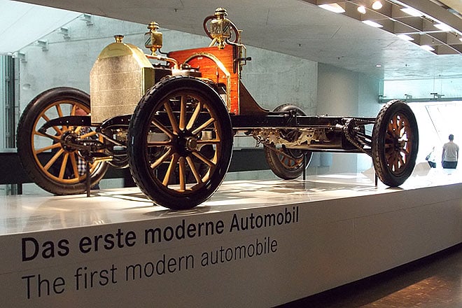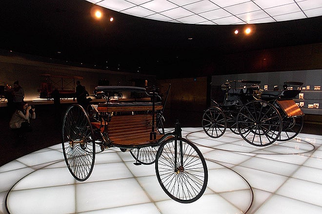 The Mercedes-Benz Museum is one of the most cutting-edge buildings in Germany's automobile city Stuttgart. These exhibits appear to defy gravity.