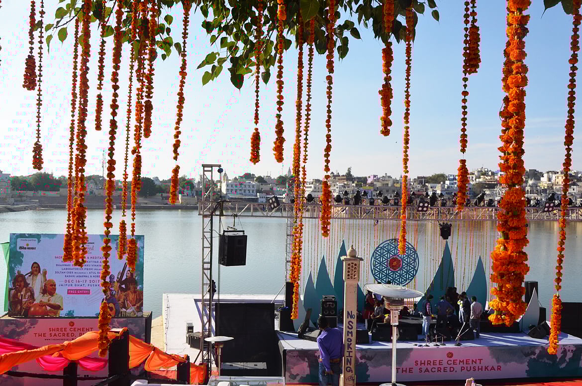 Melody emanated from the strings of ravanahatha was completely in sync with the swaying marigold garlands hanging from the banyan tree. The lakeside teemed with activities&ndashdevotees offering prayers, a troupe of traditional musicians warming up, domestic visitors finding themselves drawn to the ghats, some dancing-swaying-hoola-hooping hippies. Here and there musicians played their instruments, providing great photo-ops&ndashPushkar Lake was a sight to behold and a place to be in. I was there for Shree Cement The Sacred Pushkar festival (December 16-17). Surrounding the sacred lake are 10 ghats&ndashthe Varaha Ghat, the Dadhich Ghat, Saptarishi Ghats, Gwalior Ghat, Kota Ghat, Gau ghat, Yag Ghat, Jaipur Ghat, Karni Ghat and Gangaur Ghat. I had some time to spare before the musical evening started, so I decided to take a walk along the ghats. The lake seemed to come to life in ways only one can understand, depending on what you choose to observe. For me, the combination of music, the story of Brahma, the nip in the air, faces and people's movements closed the deal. The ethereal world of Pushkar is no poetic imagination.