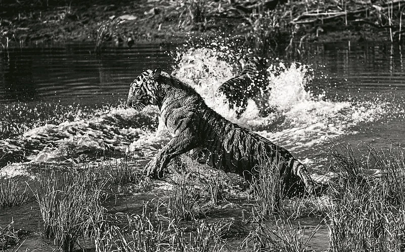On the camera, I found the place addictive. After we returned from the trip, things went into lockdown - and I had plenty of time to go through the few hundred pictures I had clicked. Having been influenced by the black-and-white photography of David Yarrow, I decided to try my hand at &lsquoRanthambore in black and white&rsquo.