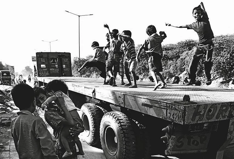 In order to break the monotony of their 'unending travails', the truck drivers nurture several addictions, ranging from a nicotine high via a bidi, the numbness induced by tobacco, the caffeine kick of a 'cutting chai' or simply the joy of playing cards.