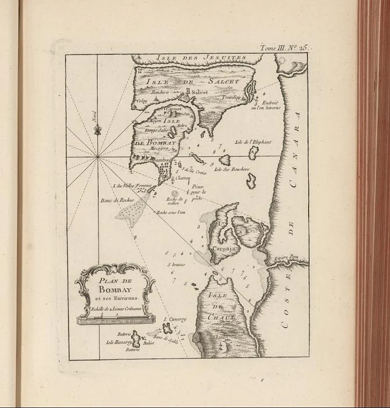 This map was probably created after the original seven islands were merged&mdashit only shows Salsette and Trombay marked as a major separate island. The original seven now hold South Mumbai, while the latter makes up Thane and the suburbs.