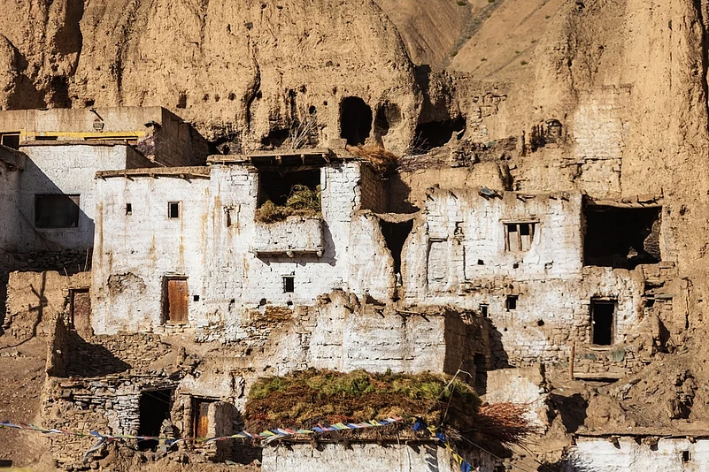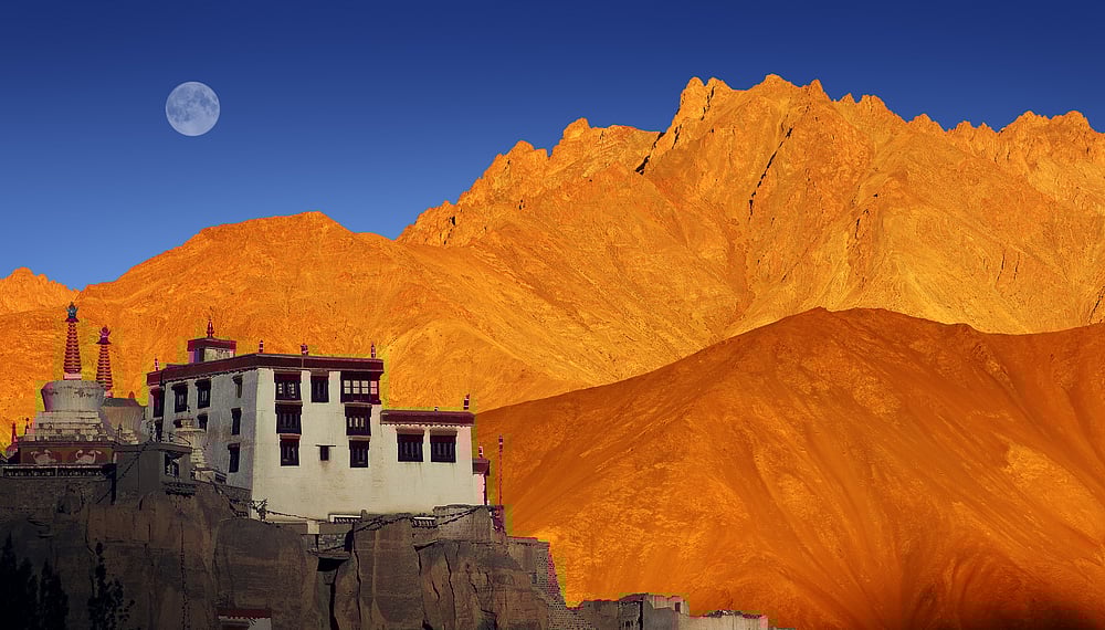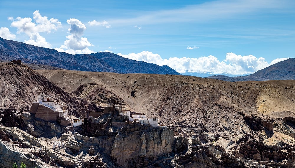 Lamayuru falls on the Leh-Kargil-Srinagar Highway, and is known for its monastery and the incredible landscape that has earned it the label of "moonland." Take a beautiful drive from Leh along the Indus, and via some mind-boggling bends and expanses, Lamayuru comes as a fitting crowning end. The village is enchanting. But it is the landscape that will stun you. The Lamayuru landscapes can be classified under the geological term, badlands. Badlands are a type of dry terrain where softer sedimentary rocks and clay-rich soils have been extensively eroded. They are characterised by steep slopes, minimal vegetation, a lack of substantial regolith, and high drainage density.