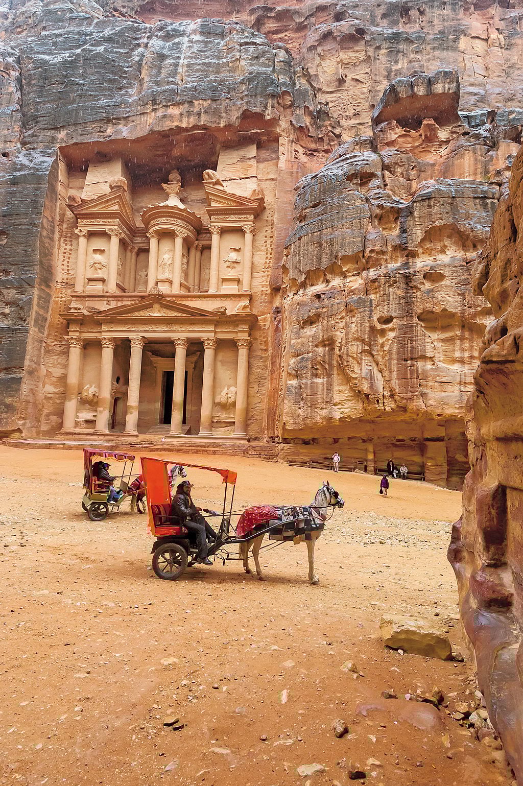 The most popular attraction to visit in Petra is Ad-Deir, a monastery designed in Nabatean architectural style. Reaching the monastery could be a chore for one has to climb a flight of 800 steps. The second popular attraction is Al Khazneh or the Treasury. To reach Al Khazneh one has to walk the 1.2km long narrow gorge of beautiful and naturally coloured sandstone walls. As you emerge from the Siq you will come face to face with the massive Al Khazneh, one of the best preserved monuments in Petra.