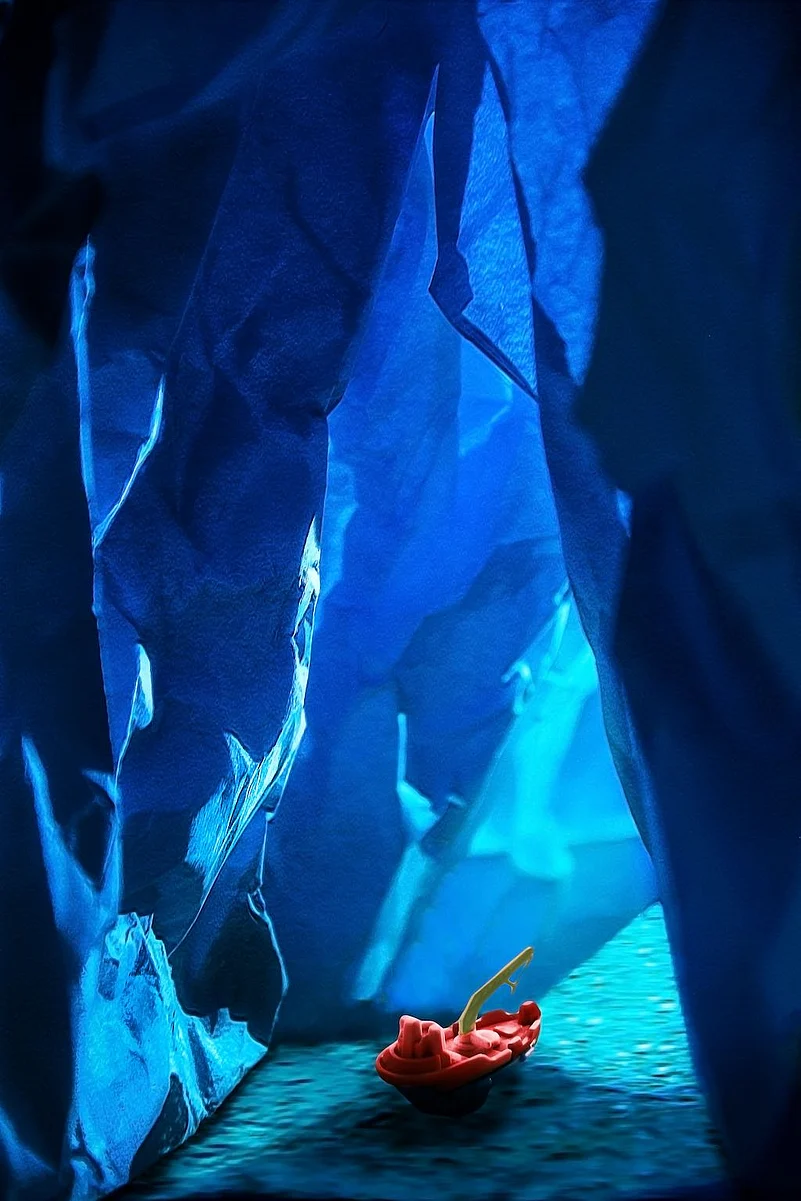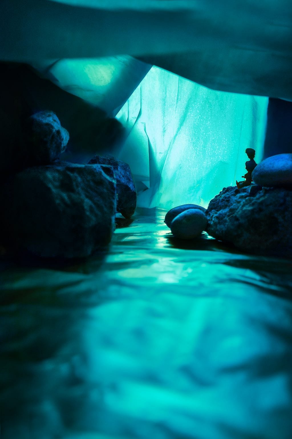 There were times when I thought I would never make it to the great ice caves, but eventually this lockdown made it happen. In these photos, I reimagined the other-worldly ice caves by using crumpled paper sheets / blue sheets for caves, and a glittery clutch bag and aluminium foil for the watery effect on the base. I illuminated the caves using lamps and a cellphone torch.