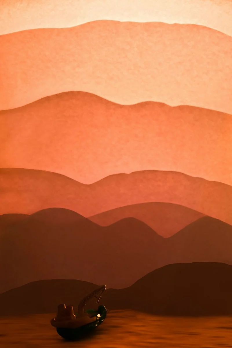Witnessing the sun set on the horizon always makes for surreal photos. To get the feel, I used aluminium foil for water, and a table lamp for the drowning sun for capturing a perfect sail. The most important aspect, other than craft skills and camera technicalities, is to see how realistic you can make it.