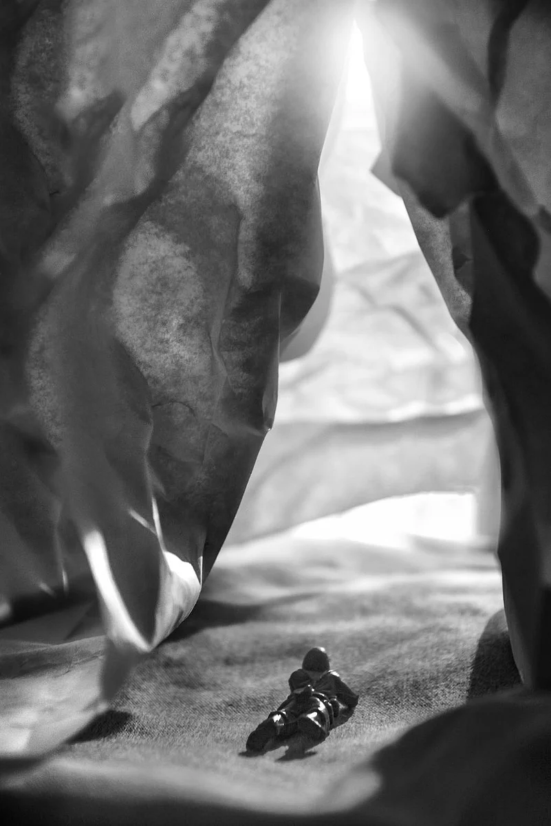 I've always wanted to explore India's rock cut caves and got to do so now. With the help of my tiny soldier figurine, I made it safely in and out of these mysterious caves. It was as easy to create these caves at home as it is difficult to actually find and explore them in the real world. I made these caves with crumpled paper and used a cellphone torch to light up the interiors. And my tiny soldier accompanied me all the way in my search.