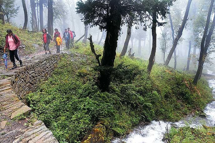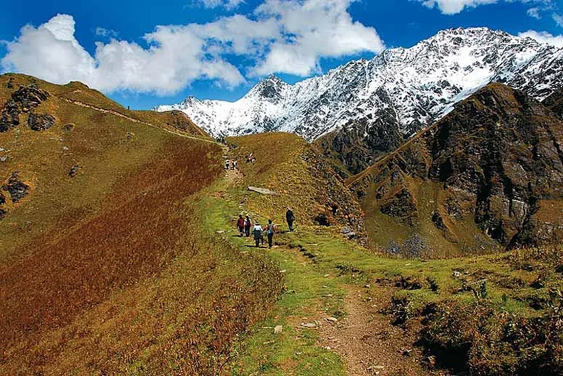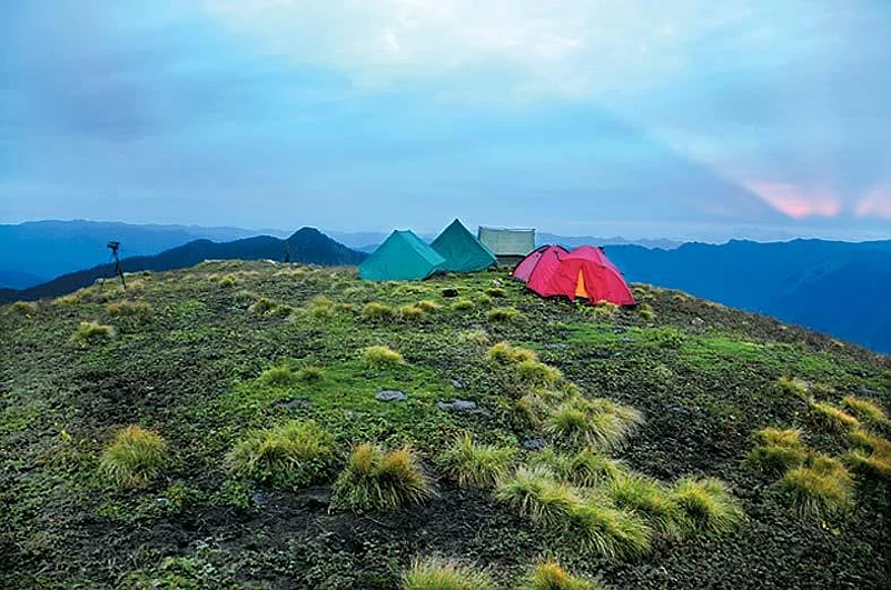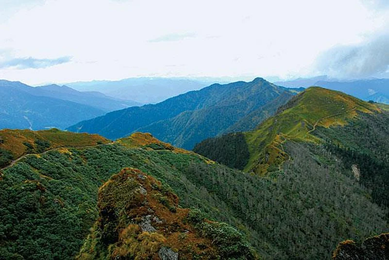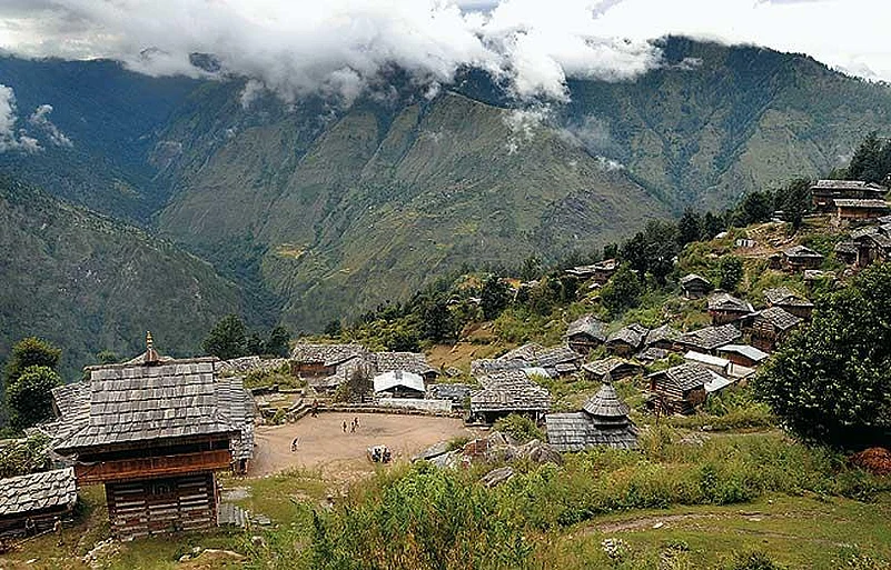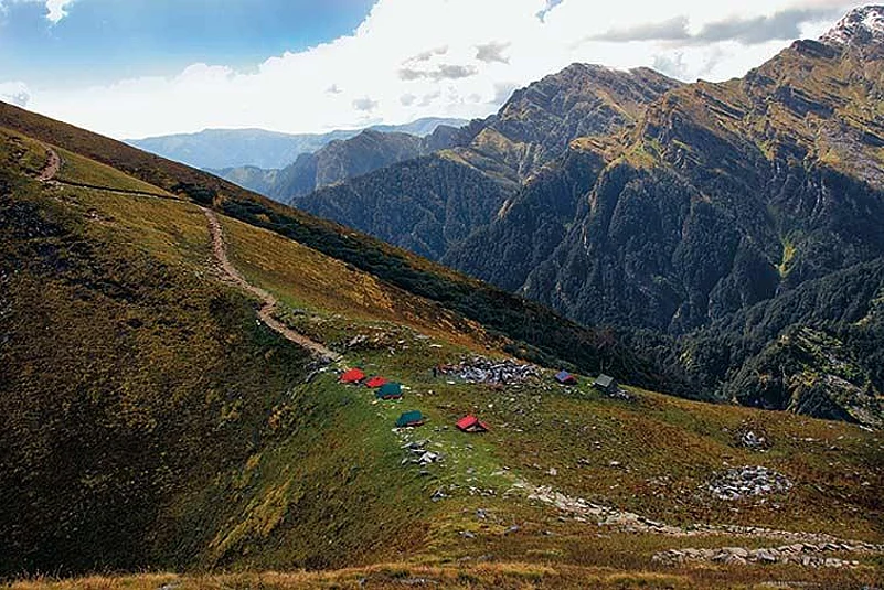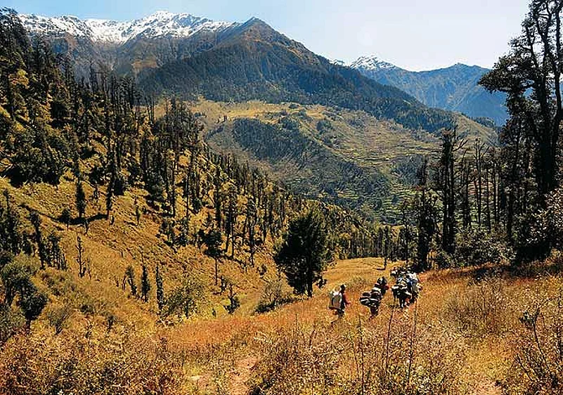 DAY 1 We walked past well-kept mountain villages and small fields. We requested a villager to give us chillies from her fields without a moment's hesitation, the family plucked enough to last us the trek, refusing to accept any money in return. By late