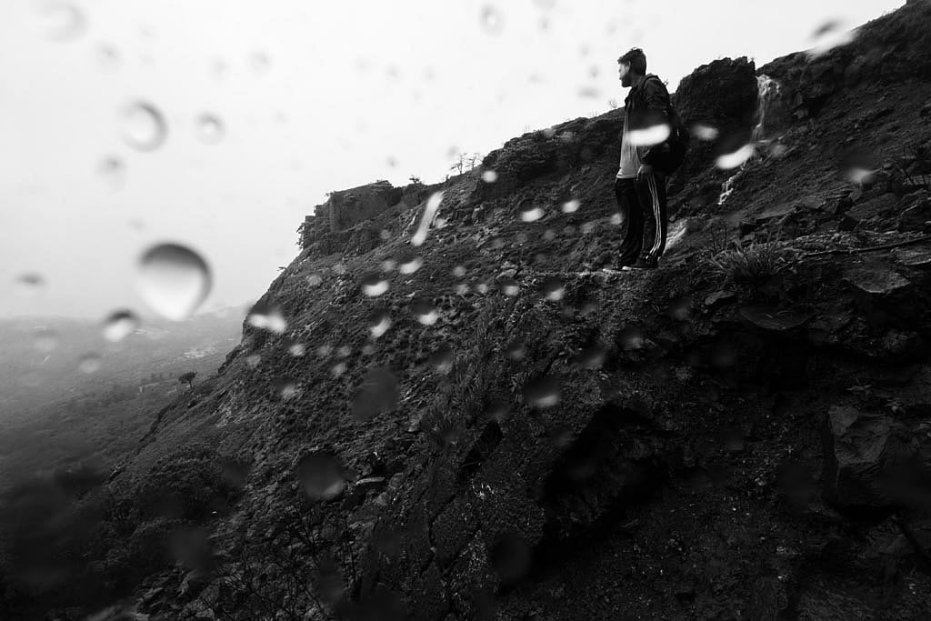 These photographs explore the environment of the place during monsoon the area remains covered in mist and it rains almost every day. At places, one can see patches of clouds moving around with rain pouring out of them, simultaneously. There is a stretch of the trek where one has to climb over a waterfall, and at the peak, it gets difficult to keep the eyes open for long, and the small waterfalls often flow partially upward, owing to the force of the wind Given all that, it&rsquos a beautiful place to visit during the Monsoon rains, which adds an ethereal quality to the historic grandeur of the place.