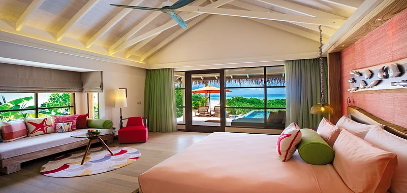 ACCOMMODATION 39 beach villas, 14 deluxe beach pool villas, 7 two-bedroom beach pool suites, 45 water villas, 26 deluxe overwater pool villas and 6 honeymoon select ocean villas