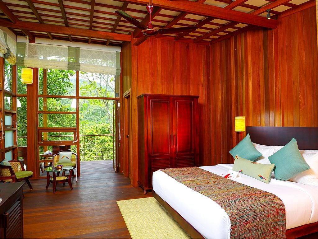 The rooms have lovely floor-to-ceiling windows to savour the stunning views of the Cardamom Hills that surround the property. The interiors have been done up in muted tones with tiny pops of colour here and there.