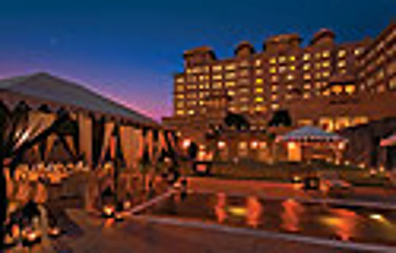 In a cul-de-sac off NH8 just twenty kilometres short of Jaipur, this luxury hotel shimmers like a mirage in the kikar scrub. Inspired by the imposing architecture of erstwhile Rajputana, it is part Rajput fort, part Mughal palace, topped by chhatris and octagonal towers the colour of desert sand. Massive wooden doors are crowned by a tower from where trumpeters and gongs-men herald my arrival in a blast of horn and drum. I wave to the turbaned musicians rather sheepishly, half-crouch through a short squat door and step into a frangipani-filled courtyard to the grand reception hall beyond.