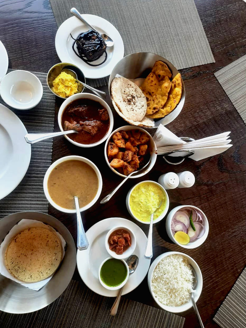 This time, we chose to dine at the Lake Café, their all-day dining restaurant. We ordered authentic Kumaoni cuisine this time. From the delicious alu ke gutke to the nutritious chane ke dubke to the satisfying kumaoni raita, everything was super fresh, and sat lightly on our palate. But what really stole the show was the spicy Kumaoni chicken curry, blessed with loads of black pepper. We enjoyed these with both wheat and maize chapatis. Dessert was a plate of gooey chocolate brownie and caramel ice cream.
