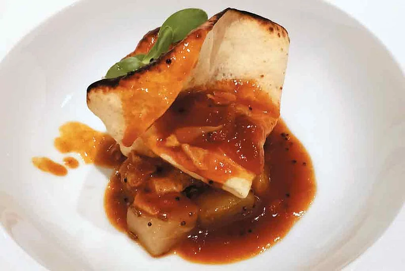 By late evening, I was back in the hotel. Rather than going back to my room, I decided to spend some time at ITC Grand Cholas Tranquebar, a restaurant that derives its name from the famous Danish colony in Tamil Nadu now called Tharangambadi. I savoured a cocktail called Femme Fatale, a fruity blend of litchi, peach and pisco, along with some yummy chips and dip while I got some reading done. While youre at ITC Grand Chola, you also have the option of visiting The Cheroot Malt and Cigar Lounge, perfect for an evening of conversation. The delicious cocktails had only served to give me a voracious appetite. Little did I know that I was about to embark on the most splendid culinary journey yet. Gourmands, be warned. Before you head to the luxurious Royal Vega restaurant, make sure that your stomach has lots of room