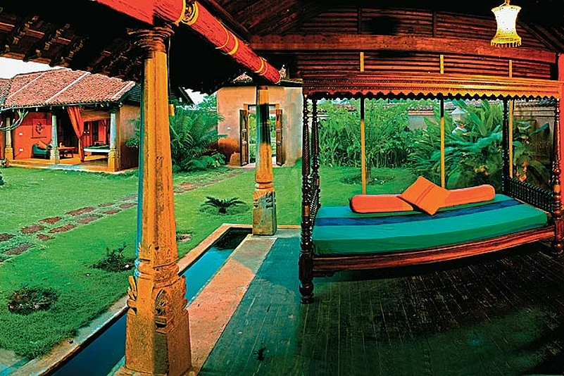 Tariff Non-AC seaside cottages Rs 5,000 Bangle House, Dome House, Silver Room, Beach House, 6 Garden Rooms, 3 Courtyard Rooms, 2 Pala Rooms Rs 7,250 Gramam House, Karaikudi Suite, Surya Suite, 2 Garden Suites Rs 10,750 Art Deco House, Family House, Kerala House (all with 2 rooms) Pool House and Artist Studio (with private pool) Artist Penthouse, Tower House and Granite House (with jacuzzi) and Doll House (2 rooms) Rs 16,500