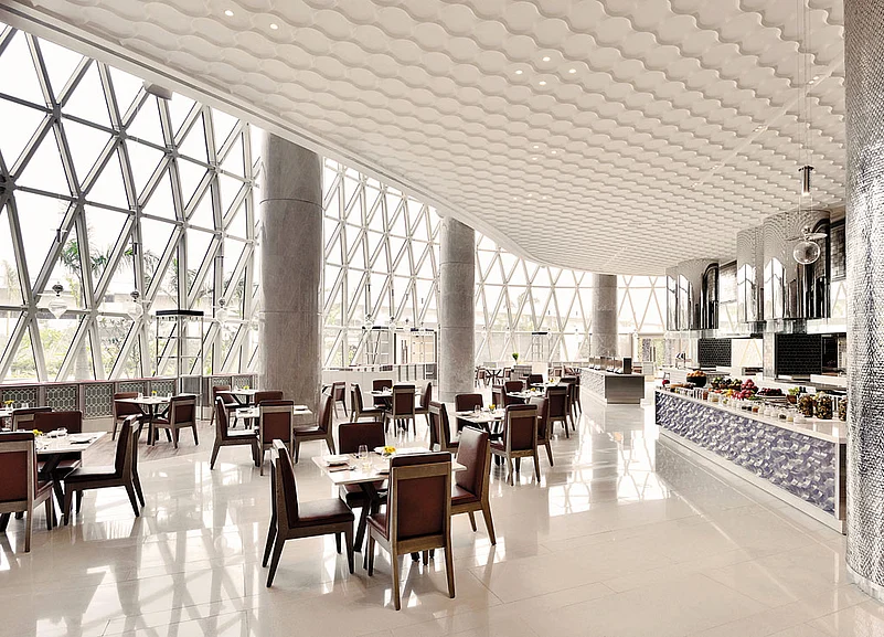 My spacious room came with a gorgeous soaking tub, and it was from here next morning that I took in sweeping views of the Eastern Metropolitan Bypass and the wetlands beyond. The hotels twinkly infinity pool was sprawled below. Unfortunately, as I found out later, it basically had a view of the new flyover on the Bypass (and vice versa), something the architect couldnt possibly have anticipated when the plans were drawn.
