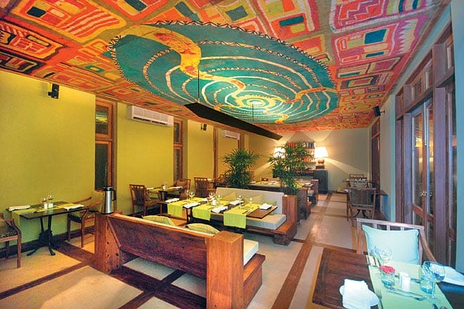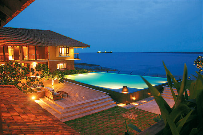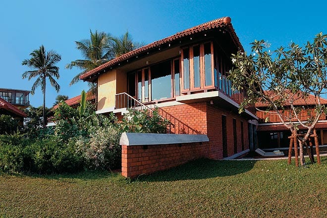 The first thing you see as you enter the gate is a vista of the river over a lily pond in full bloom. You look left and see a succession of tiled buildings opening onto each other like nested boxes. Come through the central archway and you see on your right an &lsquoinfinity pool&rsquo of constantly flowing water, which by a cunning trick of design appears to be seamlessly integrated with the river. You will find it hard to look away from this, but when you do, you will see gracious buildings in wood and terracotta, with sloping roofs and wide verandas. Designed by the Sri Lankan architect Channa Daswatte, and executed by craftspeople from Sri Lanka and Bengal, the tiny resort (only 16 rooms and a suite) is perfectly proportioned, and its use of rural idioms and materials is quietly sophisticated.