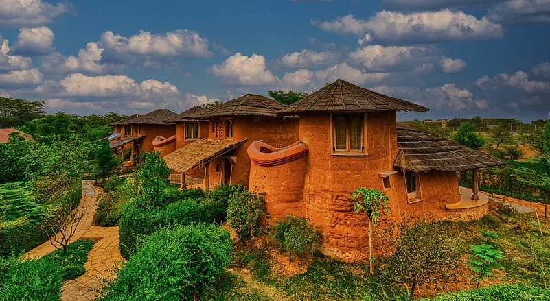 Nestled in the heart of Rajasthan, The Earth at Ranthambore offers a unique blend of eco-conscious luxury and wilderness. Spread across five lush acres, this sustainable retreat features 37 thoughtfully designed mud, wooden, and limestone cottages crafted with natural, locally sourced materials. The resort boasts seven room categories, including the intimate Neer Cottages with private pools and the rustic Ambar Villas overlooking a Miyawaki forest. Guests can relax at the Sattva Spa, dine at the open-air Raasa, or enjoy cultural performances at Kriya Amphitheatre. Located just 600 meters from Ranthambore National Park, it’s an ideal eco-luxury getaway.