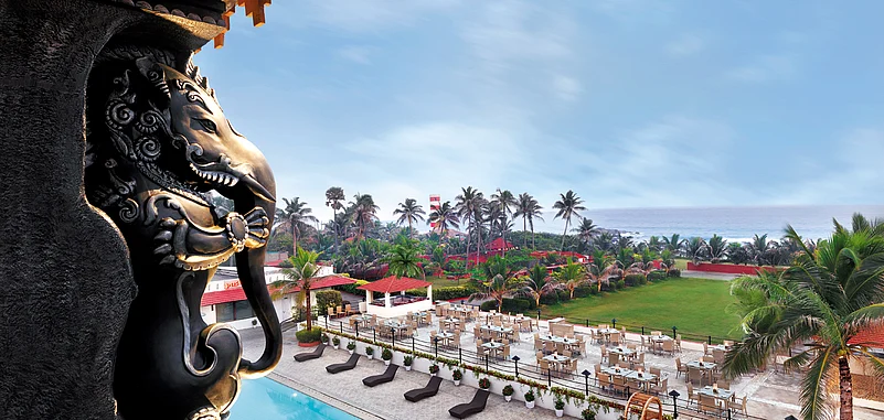 From the rooms to everything else on the outside, nothing misses the minute eye of the 30 award-winning artists and designers who worked on the property. The 70 sculptures and 50 art installations, the font used for the room numbers, hotel logo and even the visiting cards have been inspired by Andhra's temple carvings. Being a part of the Palms Beach Resort's main hotel, with its three restaurants, spa, and pool, is a plus. The food is great, and the chefs are always willing to tweak the dishes and give you some local flavour.