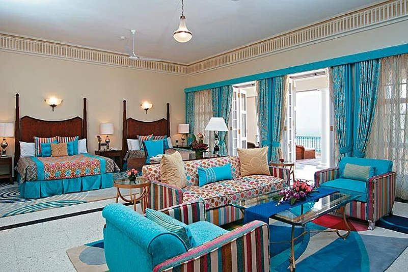 I am put up in the special &lsquohistorical suite&rsquo, which strikes me as being something of a misnomer because it is furnished in exactly the same contemporary baroque as the rest of the six rooms now open for business. What is special about this suite is its large sun-filled balcony affording a panoramic view of the hotel lawns, the bed of the extinct lake, now paved with fields, and the surrounding Aravalli hills.
