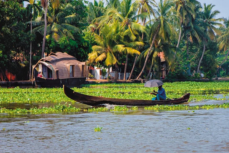 The waterfront retreat lies on the banks of Lake Vembanad, amid breezy coconut palms and tropical foliage.