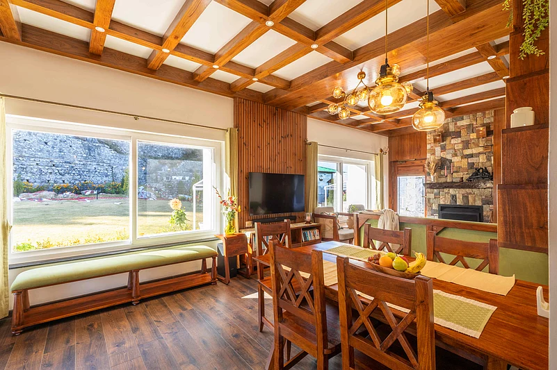 I reached Barefoot on a pleasant April afternoon. As the wind ruffled the juniper trees in the yard, the staff passed around locally-source fresh-pressed juice. A Garhwali topi was also presented to mark our welcome. Inside, old tunes from a caravan radio punctuated the serene silence of the property. Despite a stunning panoramic view of the Himadri range, the interiors will draw you in. With warm lights and premium wooden flooring, the property appeared to be a cosy cross between a luxury space and a homely interior. It currently consists of three large rooms and an ambient living space.