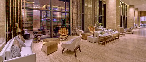 Whitefield, a neighbourhood established in the late 1800s by the Anglo Indians. It is now a major suburb. Smaller lanes, more vehicles and tall buildings have replaced the quaint countryside. And just like that my driver announced our arrival at The Den Hotel, Bengaluru. The hotelI looked up, took five steps back and looked up againstood tall. Arguably the tallest building in the area, The Den Bengaluru was shiny and imposing. A building with full glass facade,it was a pleasing sight to see. The door opened to a spacious lobby, all bright and dazzling. The Den is a luxury business hotel no doubt but it sure had a touch of traditional Indian art that gave an interesting twist to its contemporary concept. Curious geometric patterns caught my eye as I walked past the lobby, lift, all the way up to my room on the 7th floor.