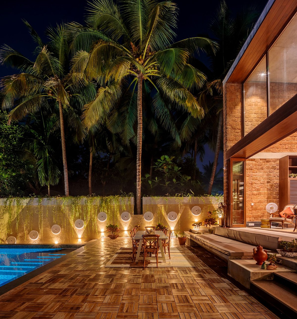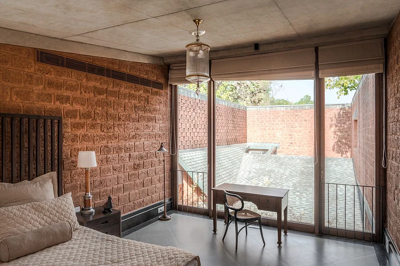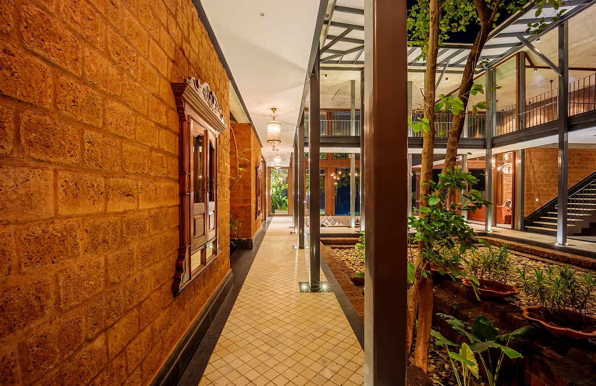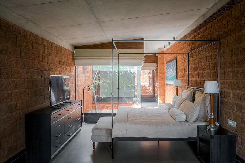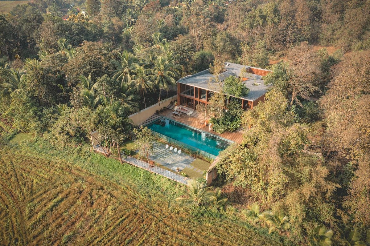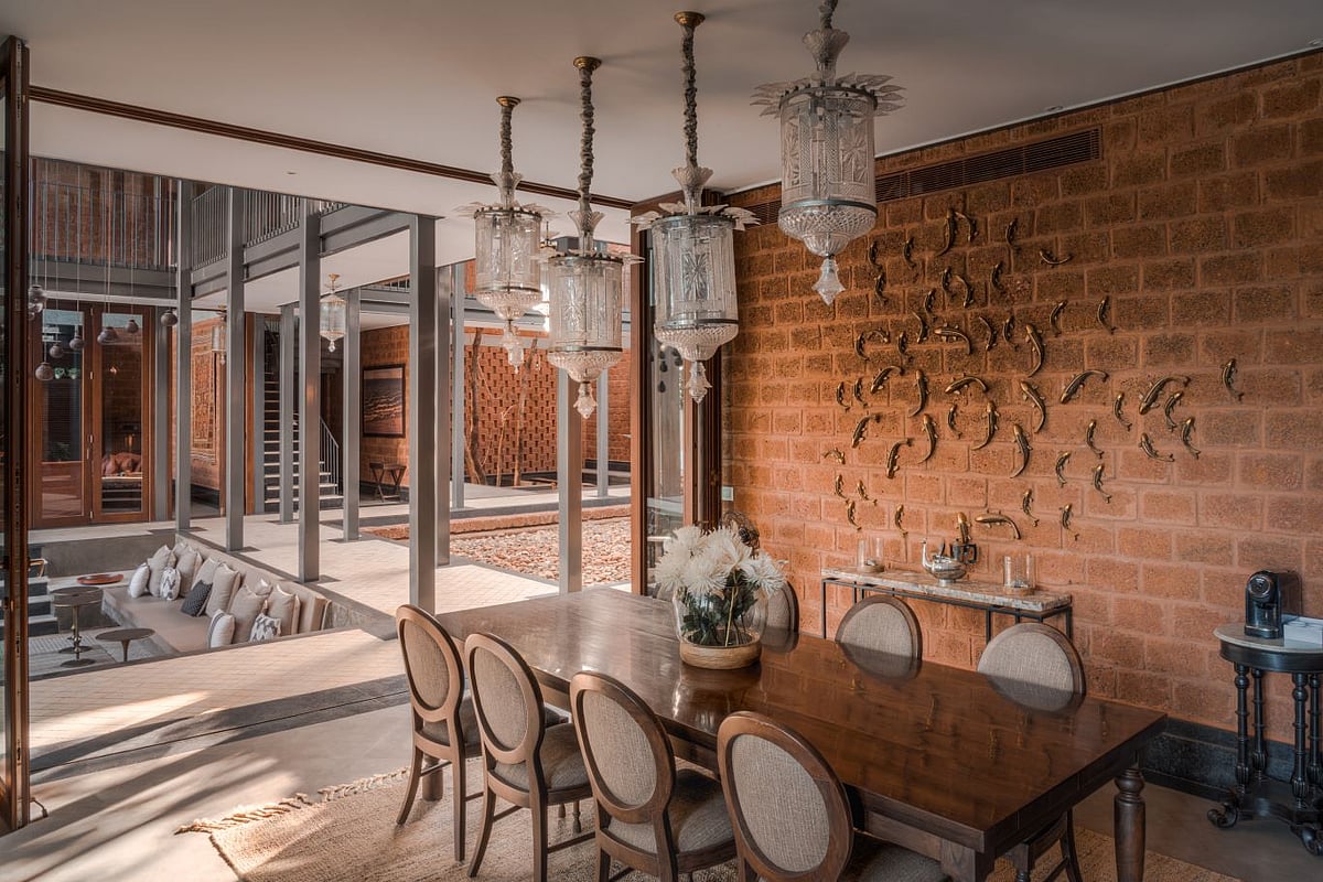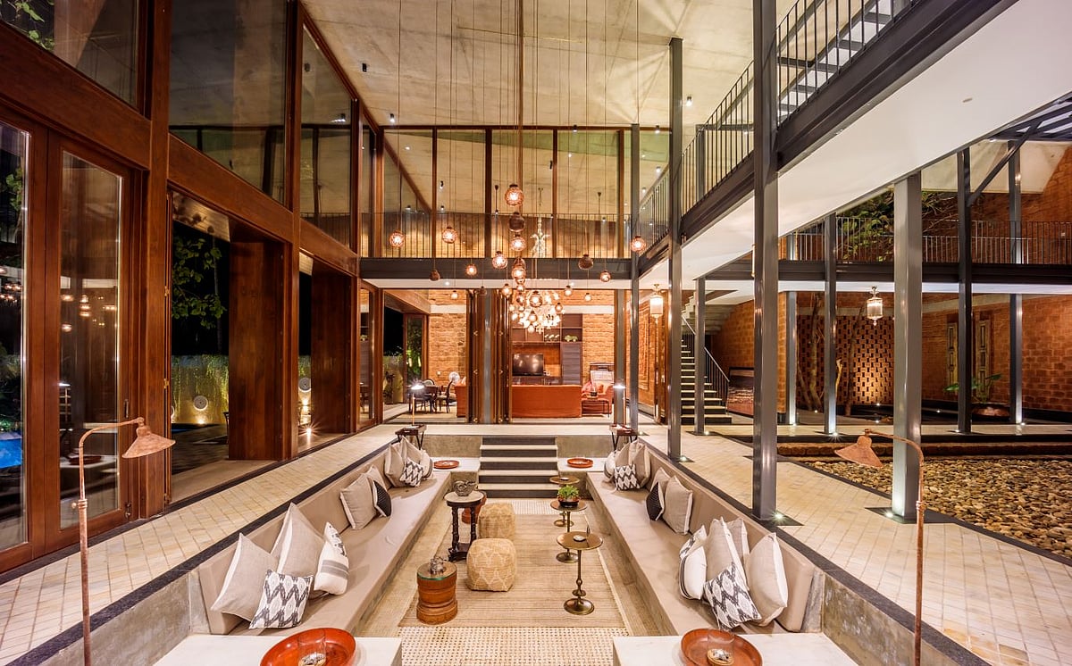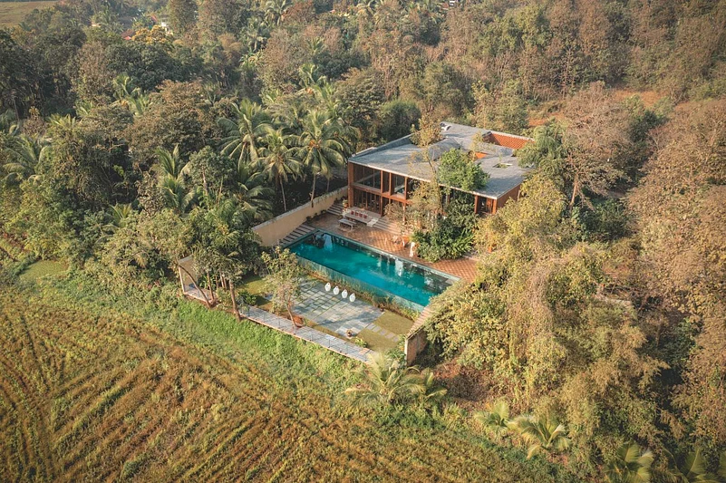 Starting from the choice of using laterite which can be seen across Goa&rsquos historical architecture, to a negative space designed within the wall to resemble a church steeple, The Glass Villa is by no means an empty narrative of minimalism. It is trying to have a dialogue. By making some incredibly deliberate choices, the designers Tarun Tahilani and Sameep Padora who collaborated on this property try to challenge one's idea of what the space needs to be while existing comfortably within its paradoxes.
