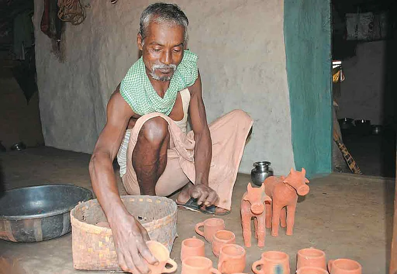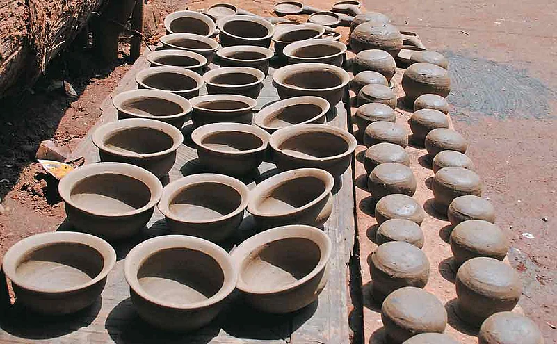 The next day was unfortunately the last day of my stay at Desia. On my itinerary was a visit to Sailapada, a village that is famous for its pottery. Most families here are engaged in this activity and take their creations to neighbouring villages and weekly markets. Although my visit to this wonderful village coincided with a harvest festival and most people were busy celebrating, we found a good-natured old man who agreed to show us how to spin the wheel and make terracotta items. I tried my hand at the wheel and failed to make anything worth keeping in comparison to the pots that were being made by these talented artisans.