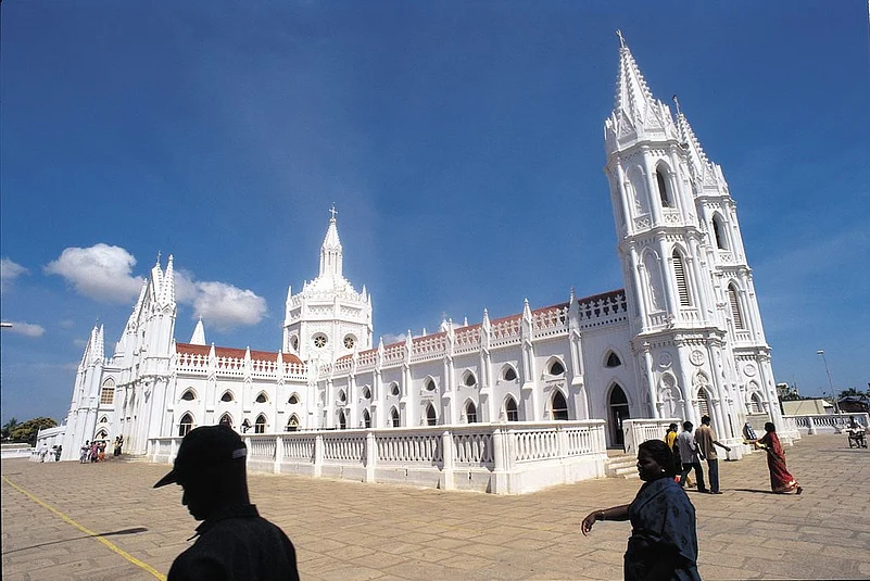 The sight of the bright white Church of Our Lady at the edge of the Velankanni Beach is simply stunning. The huge church, sprawled over flat land surrounded by prawn farms and cashew groves, was originally dedicated to the patron goddess of sailors known as Our Lady Star of the Sea. This is evident by the large shipping masts gracing its compound and the tiles arranged around the goddess at the altar. Later Our Lady Star of the Sea became a renowned healer.