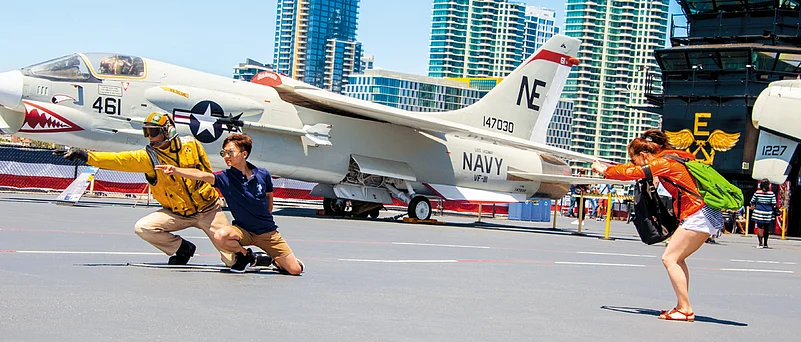 Half a mile south along the San Diego Bay is the Navy Pier and here stands the USS Midway, which is now a museum. I spent an entire day on it, fascinated by how realistically it is presented to an awestruck visitor. The self-guided audio often had me break out in goose-bumps as scenarios and situations were excitingly narrated. This mammoth aircraft carrier was commissioned a week after the end of World War II and served for 47 years. Today its 18 Mark- 16 guns, 84 Bofors-40mm guns and 68 Oerlikon-20mm cannons are silent forever, after having blazed away in Vietnam and the Persian Gulf.