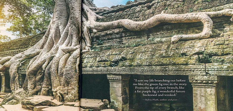 You genuflect before Serbian zapis and badnjak, and wait in Pantellaria&rsquos ancient womb gardens, referenced in Sumerian tablets. You stare at Colombian wax palms and meet a goat sipping liquid gold in an argan tree. You cross the exosphere with the moon trees of Apollo 14. You wonder at the Japanese ingenuity behind describing the light that is komorebi and the (un)natural forces that result in the crooked forest of Gryfino, Poland. You come home to India, yes, with its Bodhi tree and the medicinal neem but did we all know of the Karam-Devta of Jharkhand (we may know the tree better as kadamba, some of us, beloved of Sanskrit authors and Krishna worshippers)
