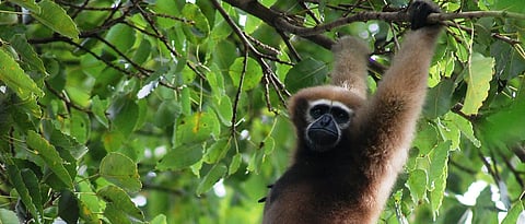 The hoolock gibbon is an extremely endangered primate. Measuring less than a metre and weighing about 68kg, the animal is Indias only ape. This tailless primate is known more by its distinctive, haunting song, than by sight. Gibbon songs resound in the Namdapha forests at dawn. Vocalised as a loud hookoo-hookoo, the songs are sung by one group at a time, with other groups taking over in turns. The chorus continues till the sun is high up in the sky.