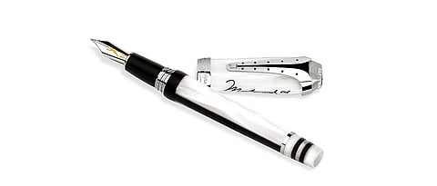 If the pen is mightier than the sword, what better artefact to pay homage to a legendary boxer The nib has a fine silhouette of Ali with his hands raised printed on it, the end of the barrel represents his socks, the pocket-clip represents the gloves and the cap has his signature printed on it. The pens also designed to withstand temperature extremes and is almost immune to breakage. From 1,60,000 montegrappa.com