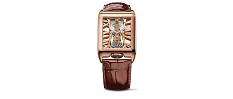 Designer Dino Modolo of the brand Di Modolo, which designs gold and silver jewellery, has revamped the elegant and classic Corum Golden Bridge Rectangle. Unlike the one created back in 1980, the Rectangle is up to 30m water resistant and a far more ergonomic wear. Unveiled during Baselworld 2017, one of the worlds biggest jewellery and watch fairs, this rose gold watch looks opulent, especially with the18-carat gold structures surrounding the dials calibre that depicts six roman numerals. These make it resemble an actual bridge. The gold micro structures suspended between the panes of sapphire crystal add to the shine and adhere to the rectangular shape dictated by the case. Price on request watchtime.com
