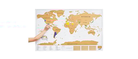 Theres something strange about these Scratch Maps. They are pretty, no doubtone is made of chalkboard, another of corkboard and a third even has a platinum look. But something interesting happens when you scratch a place on these world maps with a cointhe area acquires a vibrant colour, as if by magic. But magic is, of course, merely sleight of handthe maps have a silver foil underneath that hides a colour that reveals itself when scratched. A high-quality scratch coin is provided for that purpose. The map acts as both travel planner and journal, as you can either plan your trips by scratching routes and directions on the posters, or mark the places you have already visited. Scratch maps come in many compact sizes, shimmering shades and different finishes, and region specific maps are also available. From 13.95 scratchmaps.org