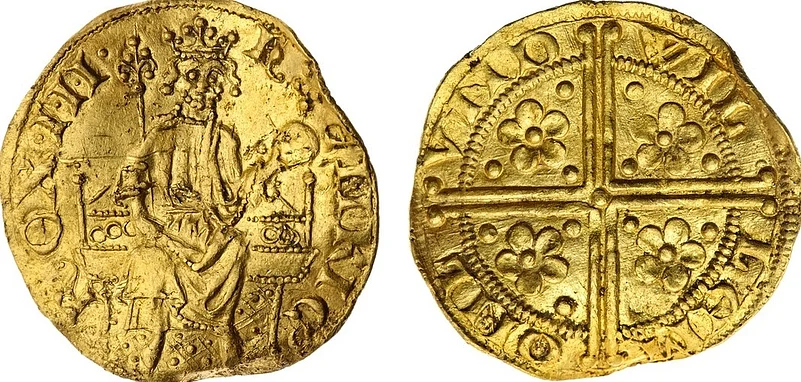 According to historians, the king introduced gold pennies partly to fund his war but the overvalued currency attracted complaints from the City of London and was ultimately abandoned. Only a few of the coins are said to exist today, most in the possession of museums.