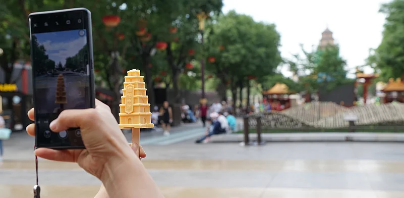 From chocolate ice creams shaped like the terracotta soldiers found at the mausoleum of China&rsquos first emperor Qin Shi Huang to the Yellow Crane Tower of Wuhan, from the Dayan Pagoda to Kunming&rsquos Jacaranda trees to statues of auspicious beasts seen at the Forbidden City, from Nanchang&rsquos Tengwang Pavilion to the Badaling section of the Great Wall, the range of ice creams and sorbets being sold at the local gift shops are mind boggling indeed. In many places, tourists can also be seen posing with their ice creams in front of the original.