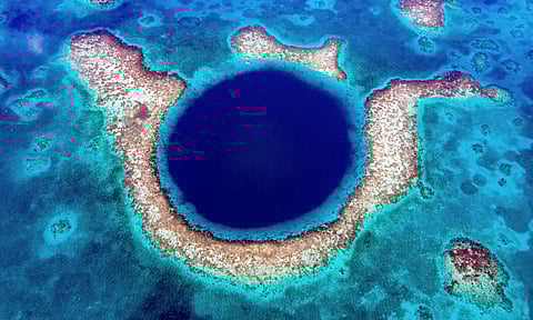 Blue holes are large underwater sinkholes that form when the limestone bedrock collapses. Some of the best-known blue holes are off Central America, including Belize's Great Blue Hole. Taam Ja' is located near the Mexico-Belize border, off Mexico's Tamalcab Island, and is close to several other blue holes in Chetumal Bay.