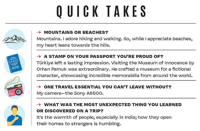 The actor's cherished travel memories include getting invited to people's homes for a meal. "There is something extraordinary about the stories unfolding around the dinner table. When you share a meal, you're not just talking about what's on the plate; you're discussing life and experiences and creating connections. It's a beautiful way to get to know someone and understand the cultural nuances of a place."